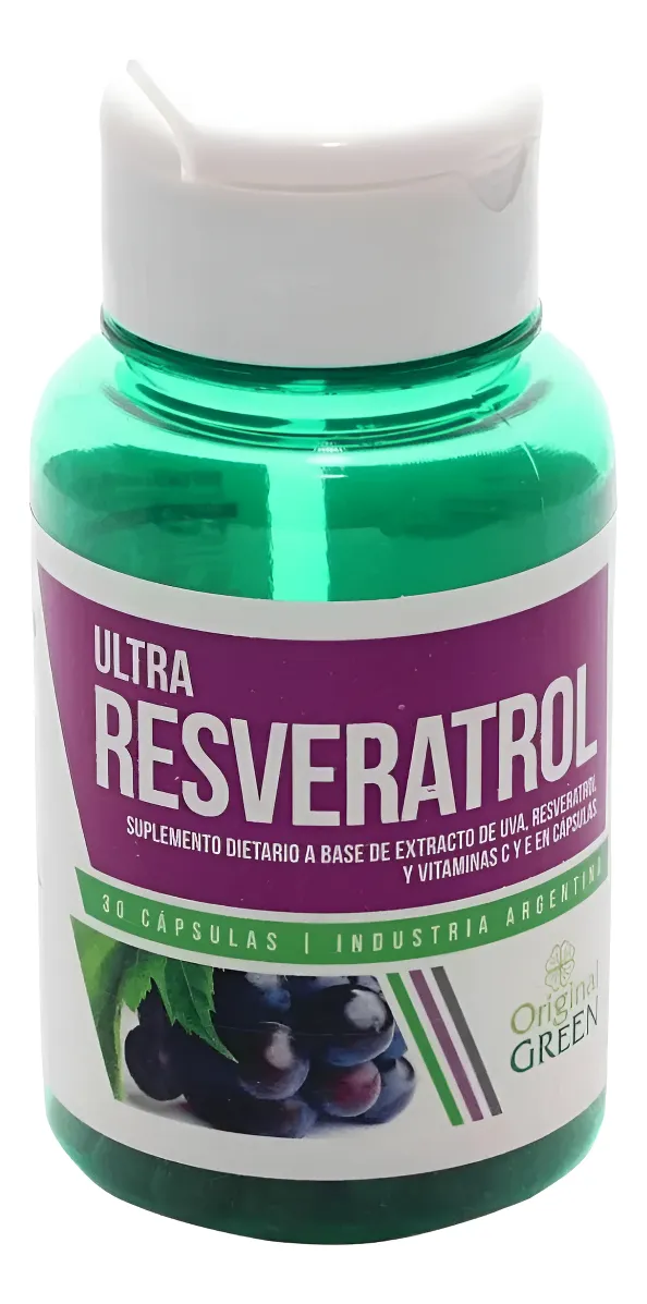 Ultra Resveratrol de Original Green, es una combinación de antioxidantes que ayudan a proteger del stress oxidativo, asociado al envejecimiento celular.